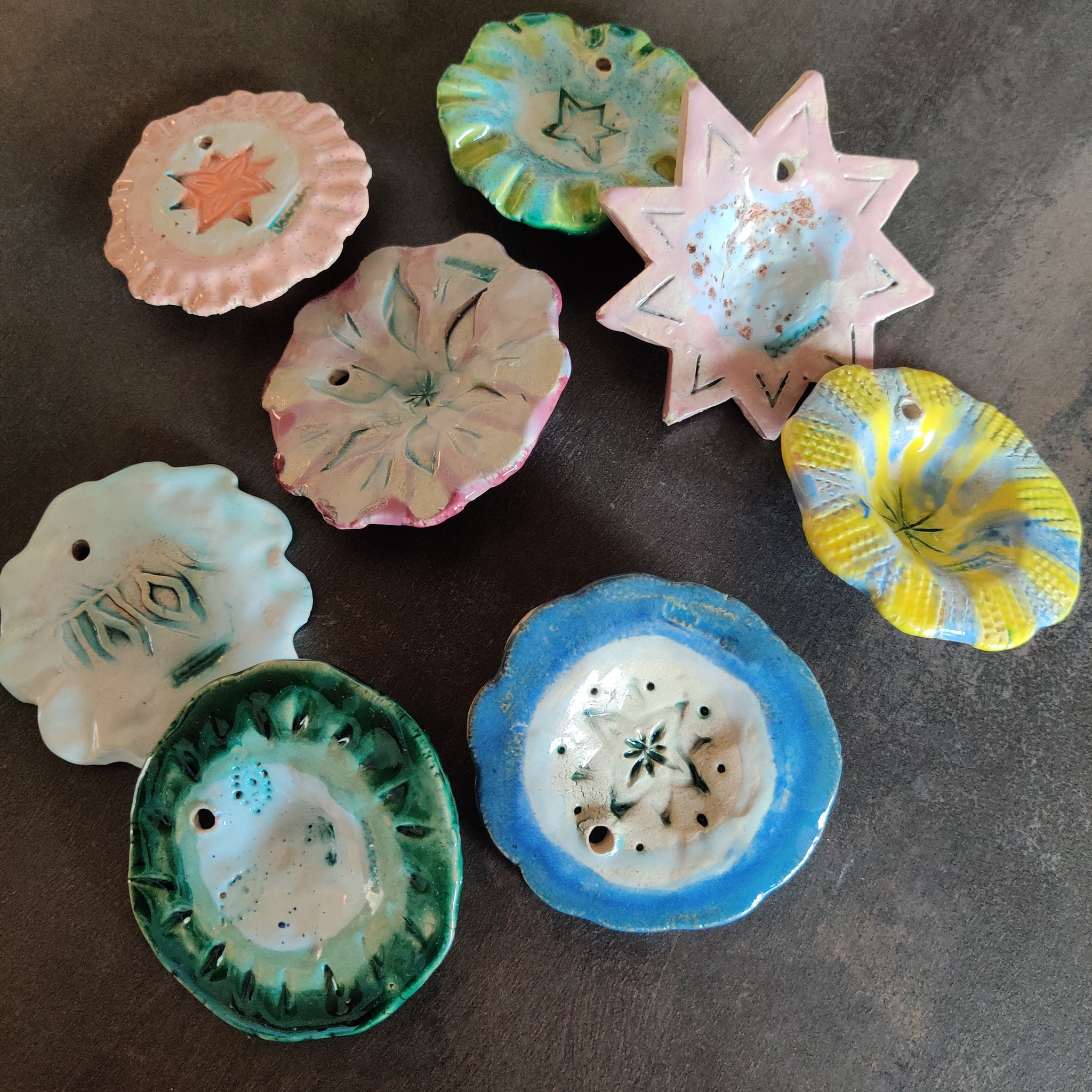Et lille rundt ornament til juletræet eller lignende. Det er glaseret på alle sider, så det kan hænge frit.