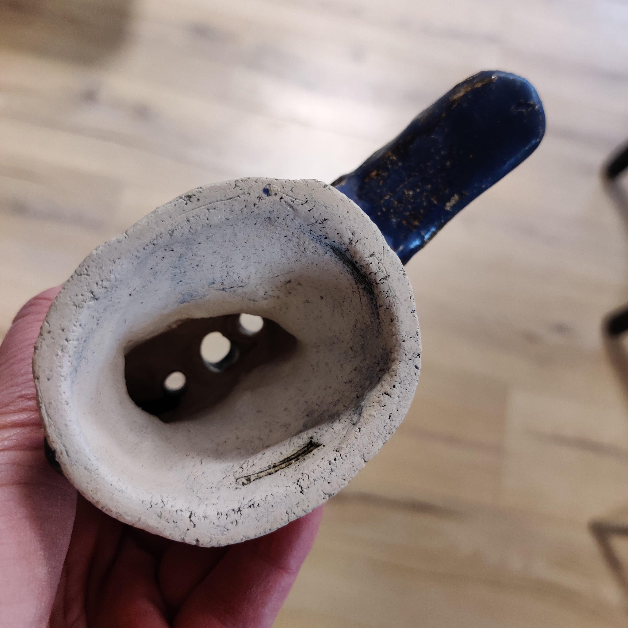 Den har nogle huller i ryggen, så man kan placere tynde pensler, papirblomster, spisepinde eller lign. i den, hvis man har lyst til det.