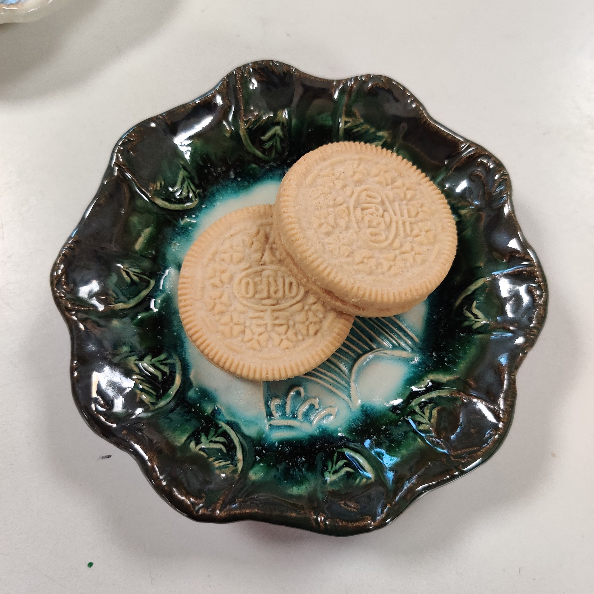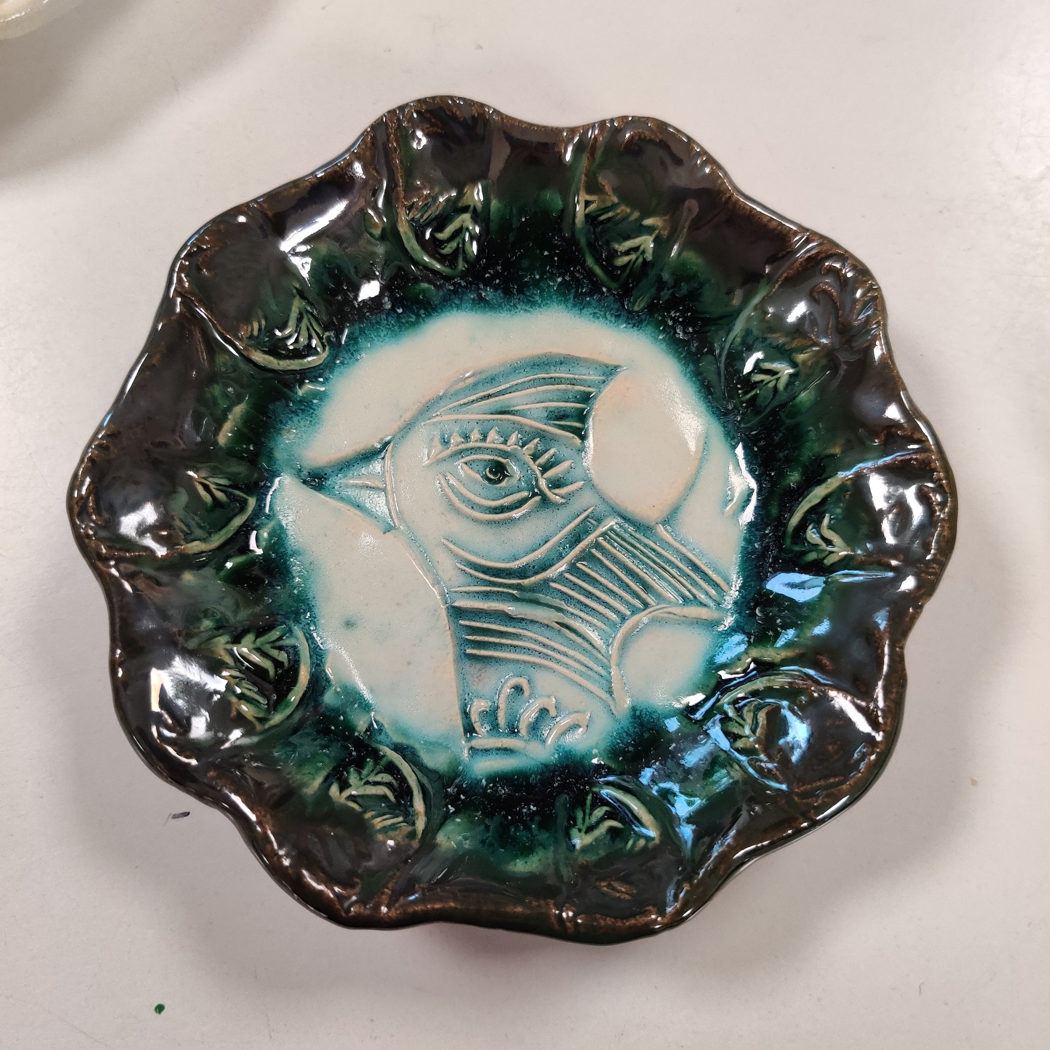 Et lille fad/en lille skål i lertøj. Den er ca. 12 cm i diameter. Den er velegnet til smykker, småkager, hårelastikker, nødder og meget mere.