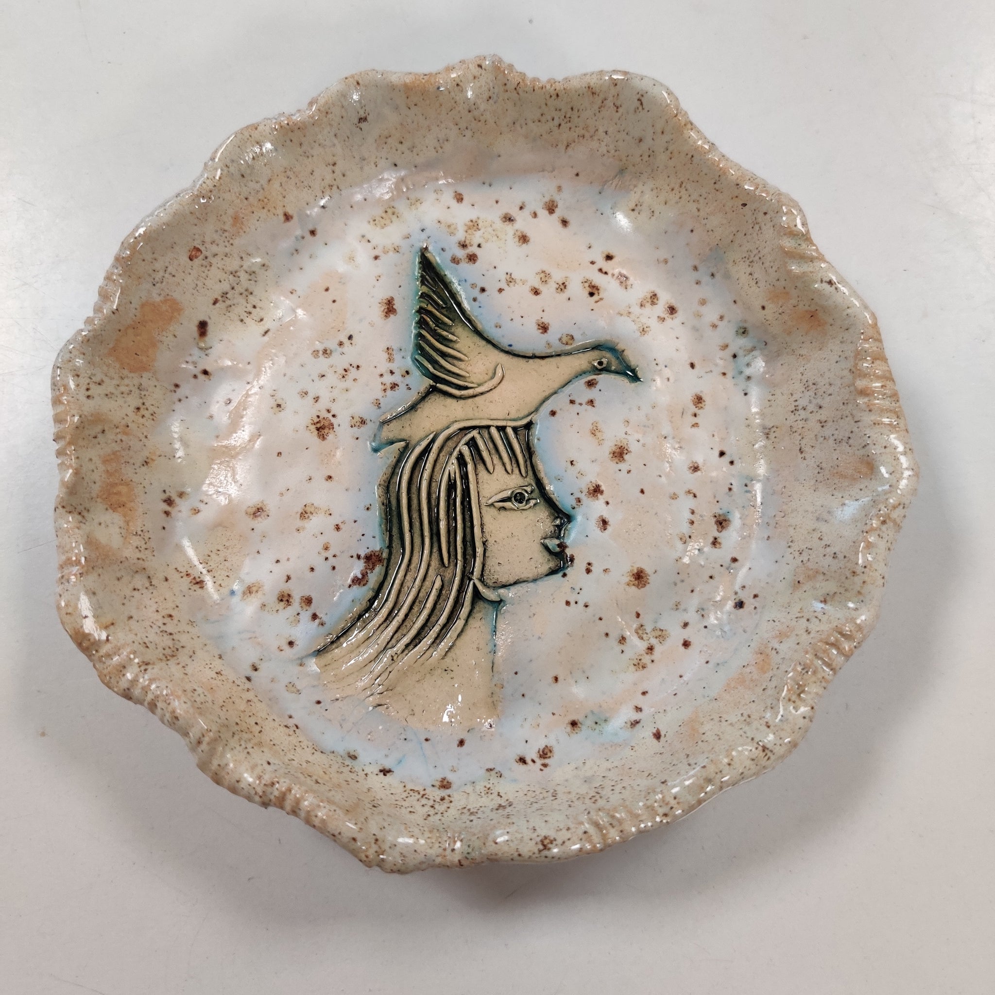 Et lille fad/en lille skål i lertøj. Den er ca. 12 cm i diameter. Den er velegnet til smykker, småkager, hårelastikker, nødder og meget mere.