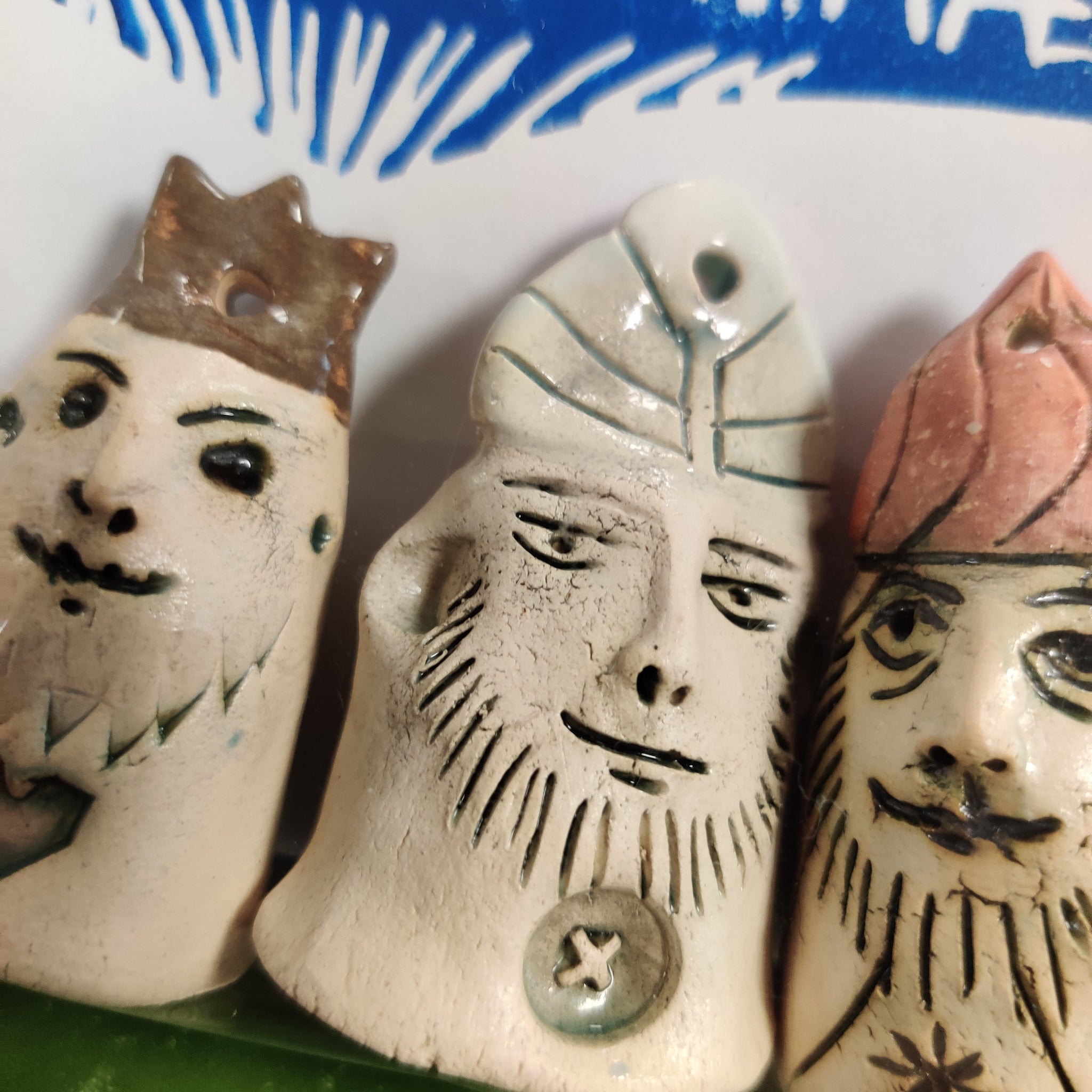 3 små vise minimænd. De er ca. 5,5-6 cm høje. De kan både stå og hænge.