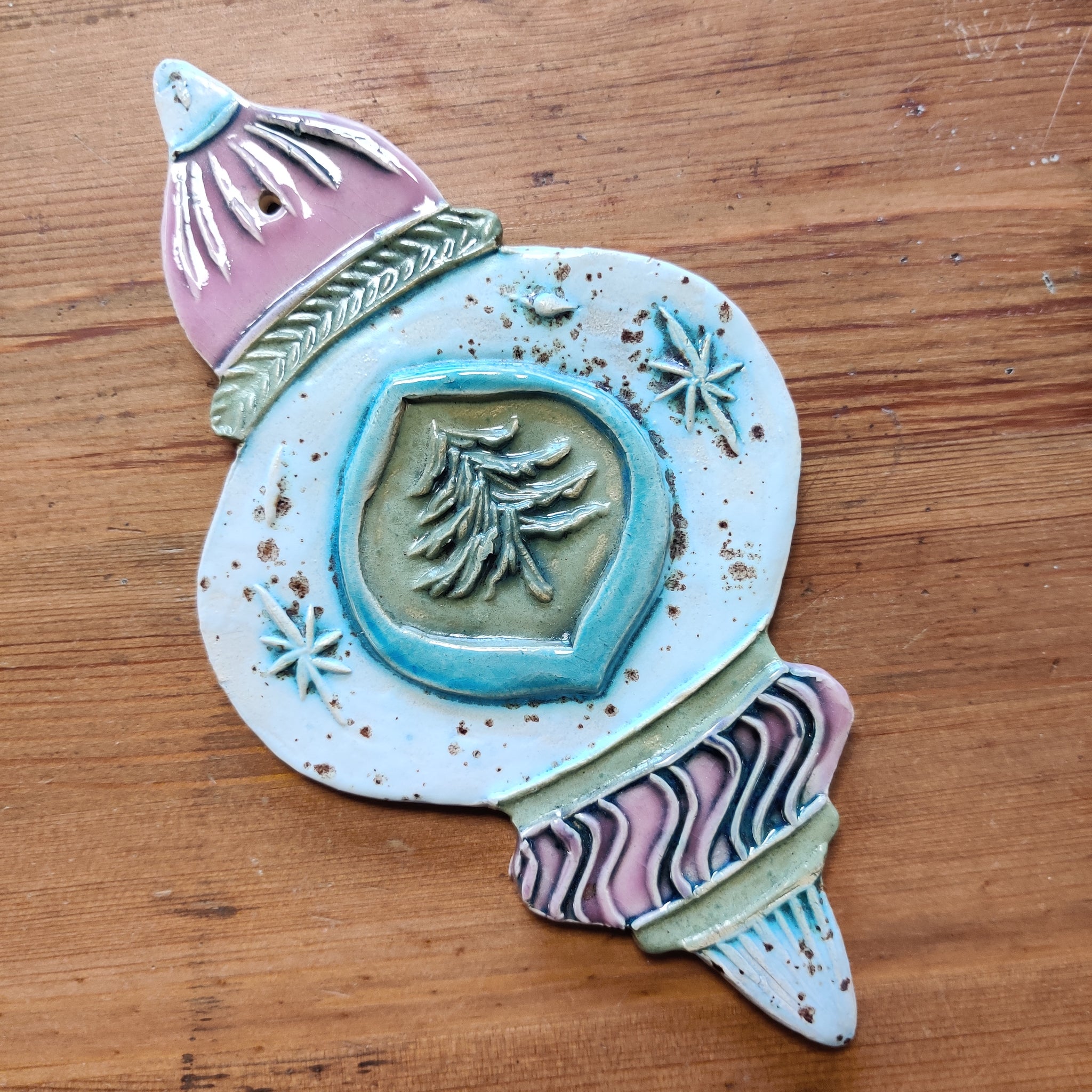 Ornamenter til væggen. De er glaserede på den ene side. De kan hænge direkte på et lille søm eller alternativt med en lille snor i.